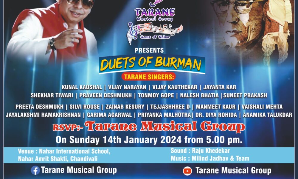 Team Tarane Musical Group presents a soul-stirring evening “Tarane with RD Burman and SD Burman” Duets