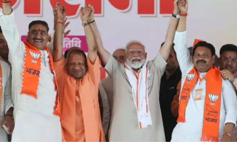 While addressing an election raly in Aligarh, PM Modi also lauded Yogi Adityanath’s mission of ‘One District, One Product, calling for the public to vote for their party to continue efforts against corruption and dynastic politics