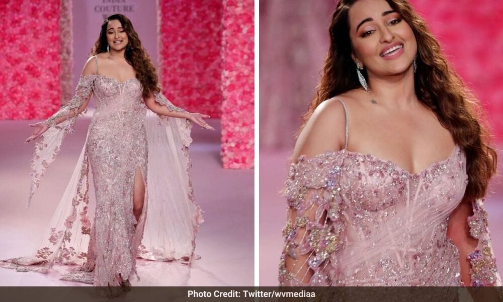 On Friday, Sonakshi looked charming as she walked the ramp for designer Dolly J at the FDCI India Couture Week. She was attired in a blush-pink gown to represent the designer’s La Vie en Rose collection.