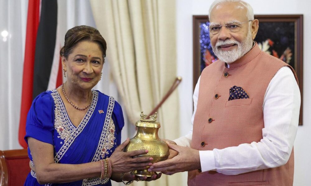 Amidst his address to the Indian community in Trinidad and Tobago, PM Modi underlined Bihar’s historic and cultural importance, praised the courage of the Indian diaspora, and called PM Kamla Persad-Bissessar “daughter of Bihar”, as he recalled her ancestral ties to the State and requested her to offer water from the Sarayu and the Mahakumbh to the Ganga Dhara in the Caribbean nation.”
