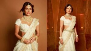 At the event, Priyanka gave Princess Jasmine vibes in a white lehenga-choli paired with traditional jewellery.