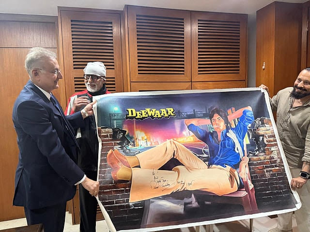 The meeting involved Bachchan signing a canvas featuring his 1975 avatar, turning the celebration of the 51st anniversary into a full-circle moment.